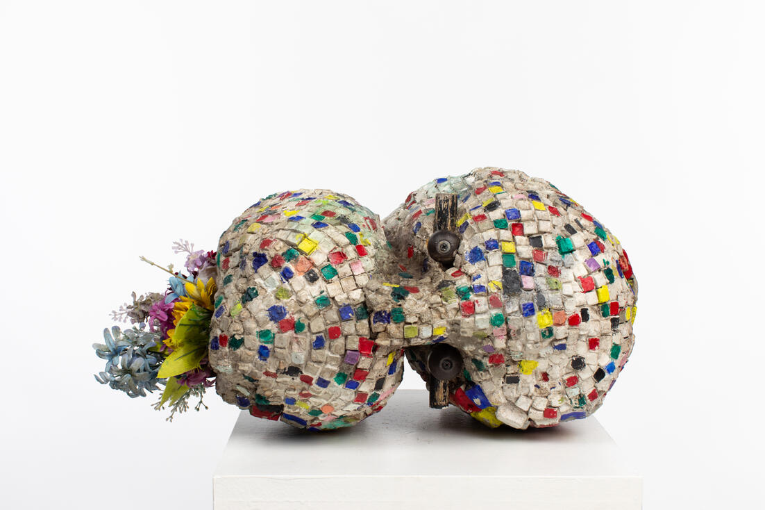 concrete handle bars and fake flowers 2023