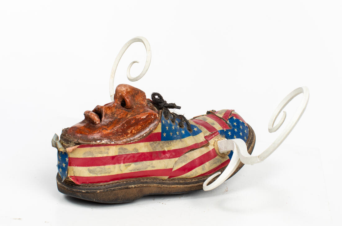 shoe with flags terra cotta and plastic horns 2009